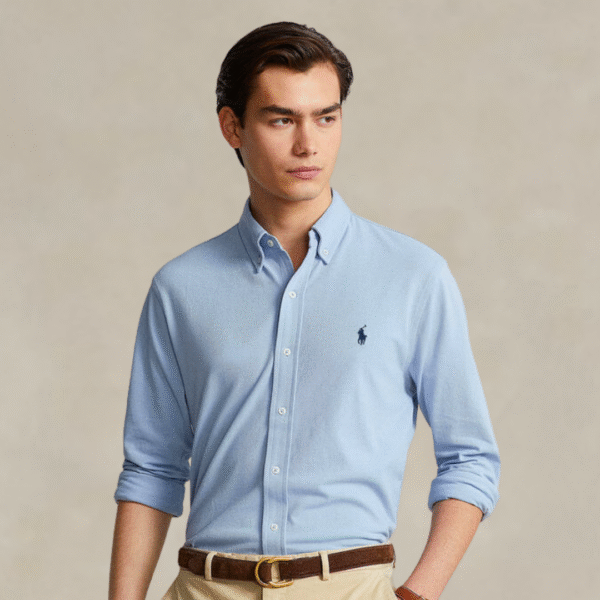 La camisa oxford se introdujo muy pronto en los diseños de Ralph Lauren y, desde entonces, se ha consolidado como uno de los pilares del look Polo. Su exclusivo tejido se ha sometido a un lavado de fórmula secreta que le aporta un carácter espontáneo y distendido, y una gran suavidad con aspecto jaspeado.